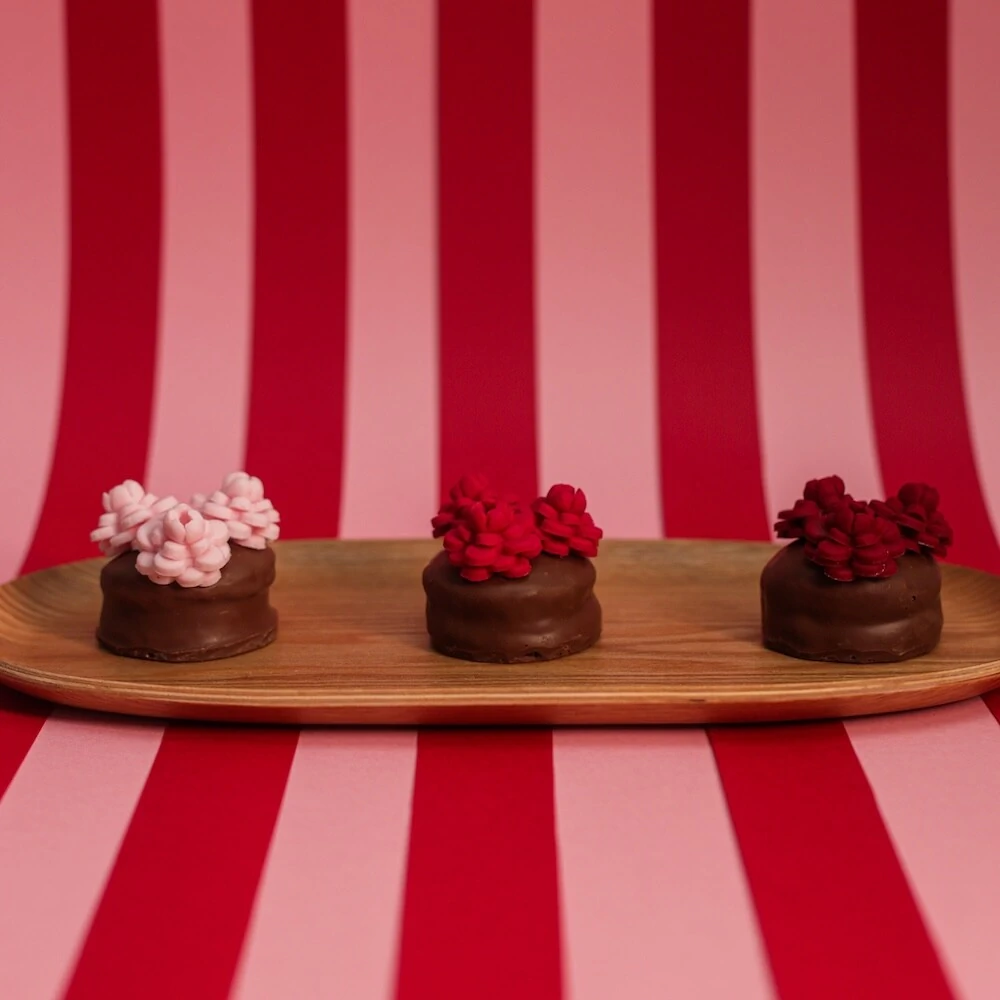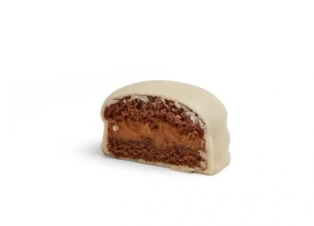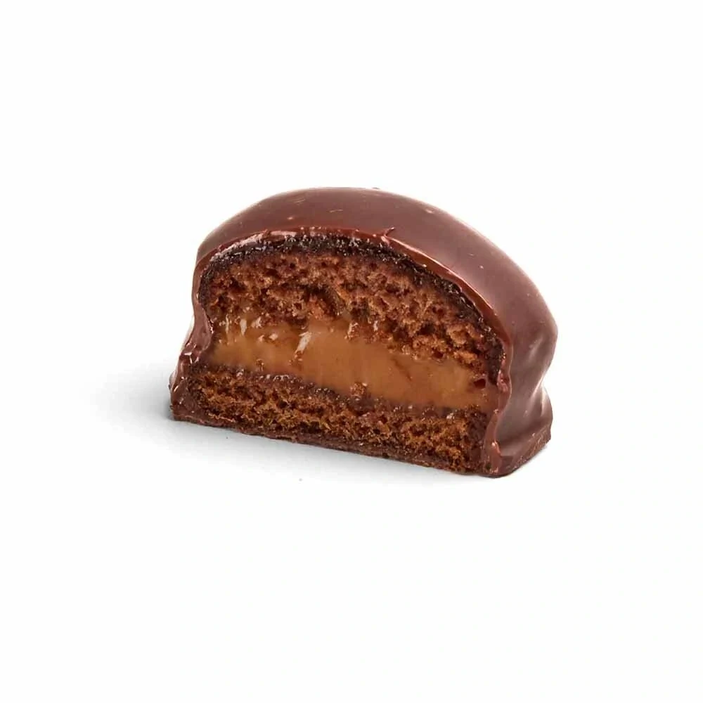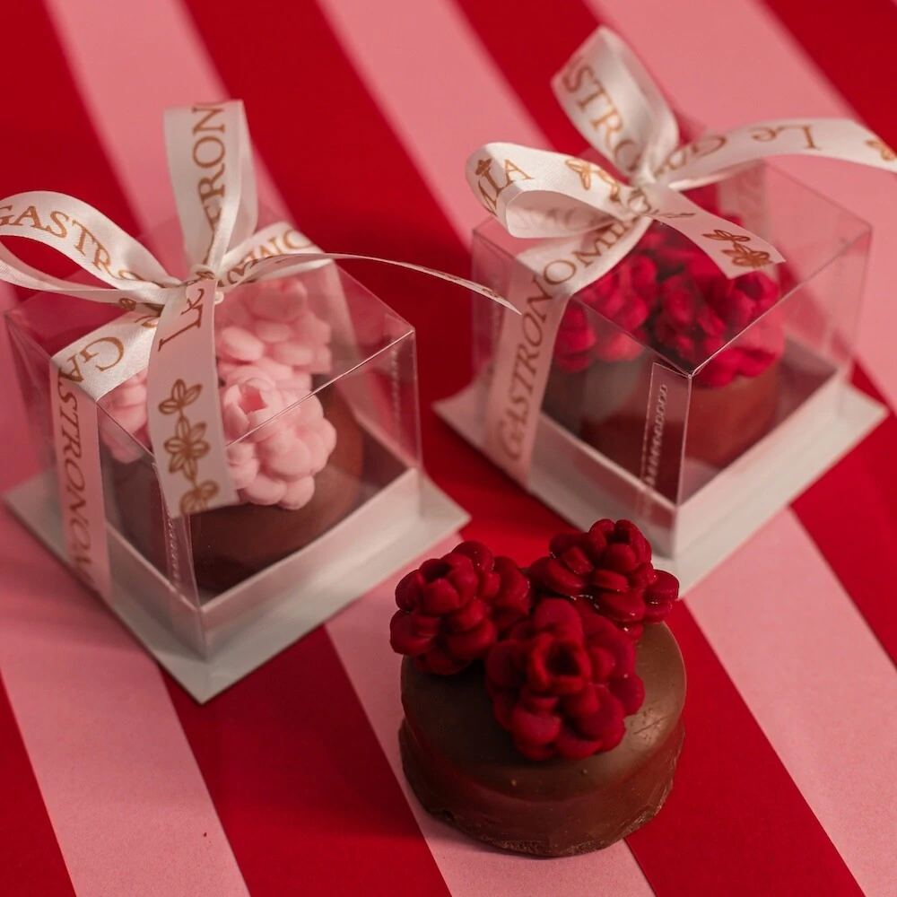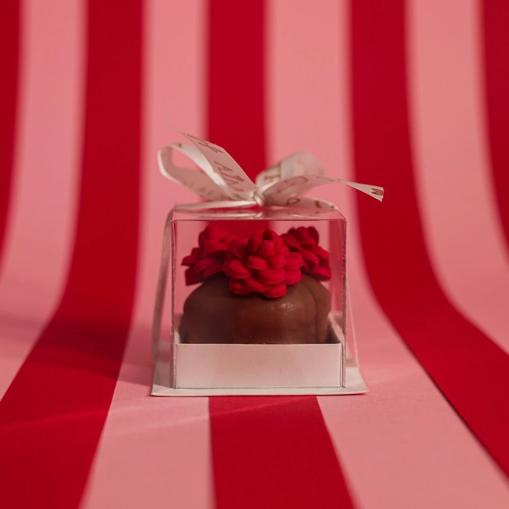 -Caixa Le Gastronomia com 1 Pão de Mel com recheio de Doce de Leite ou Brigadeiro e cobertura de Chocolate ao Leite ou Branco, com Enfeite de Dia Internacional da Mulher, de cor sortida.