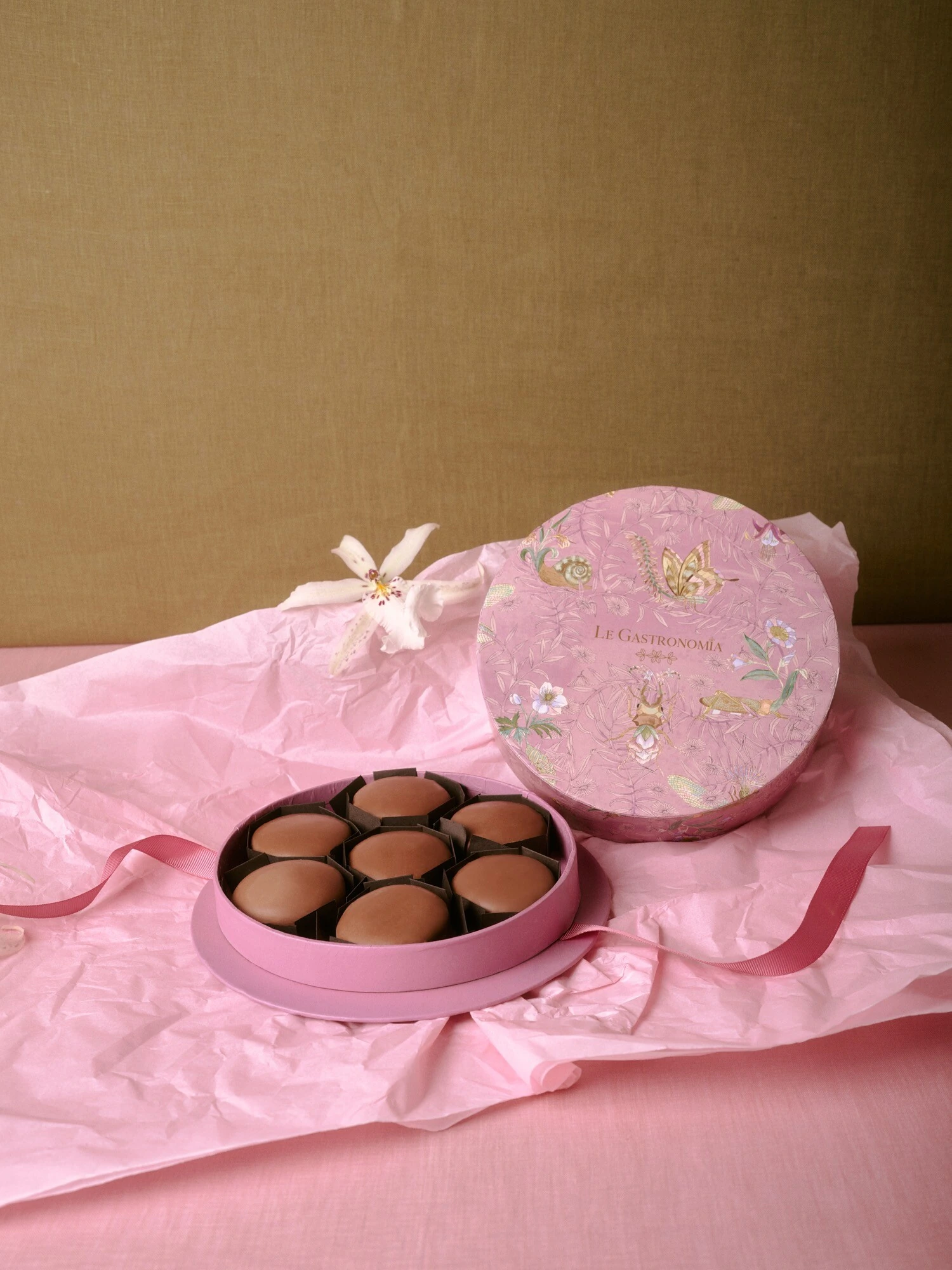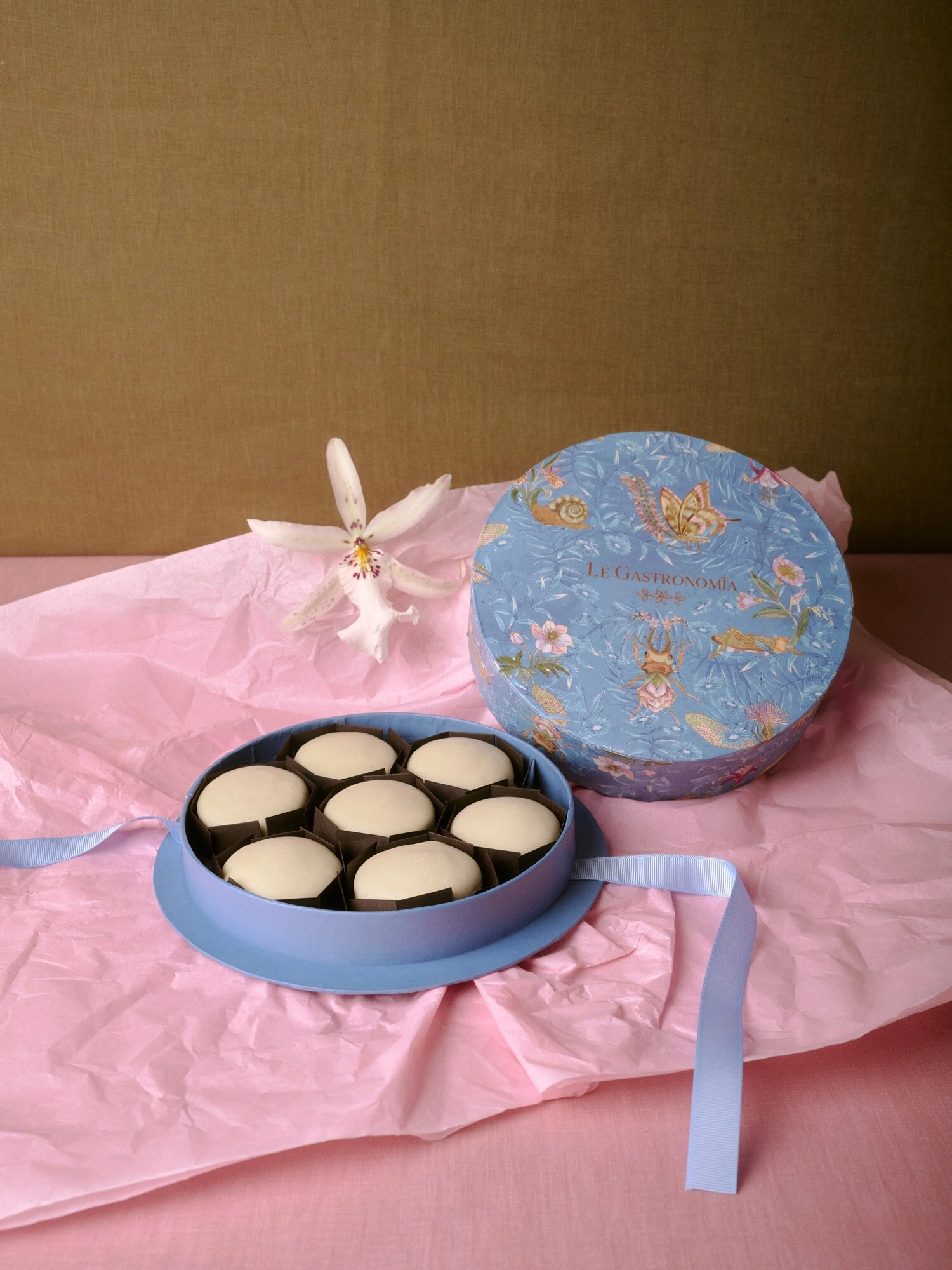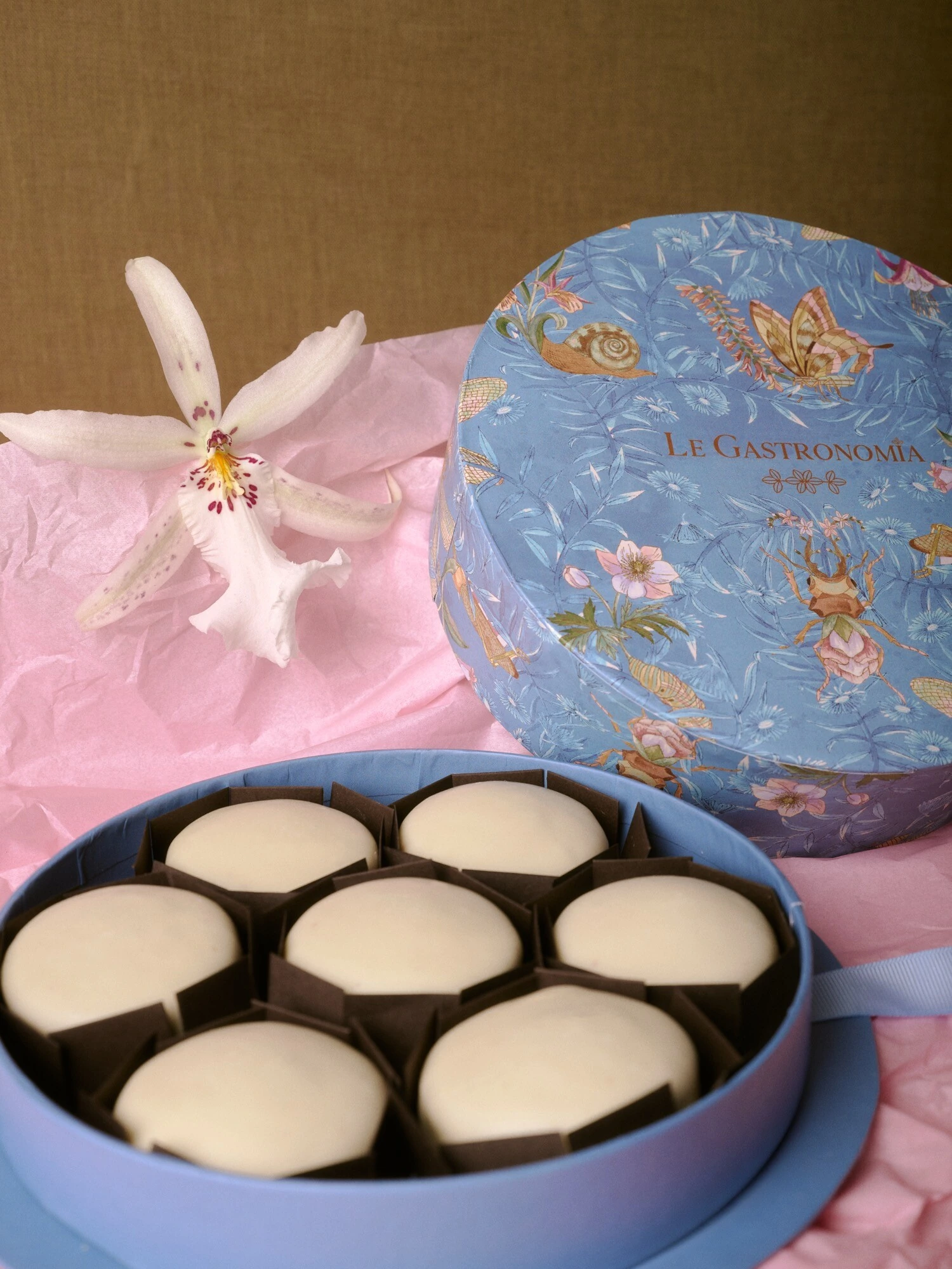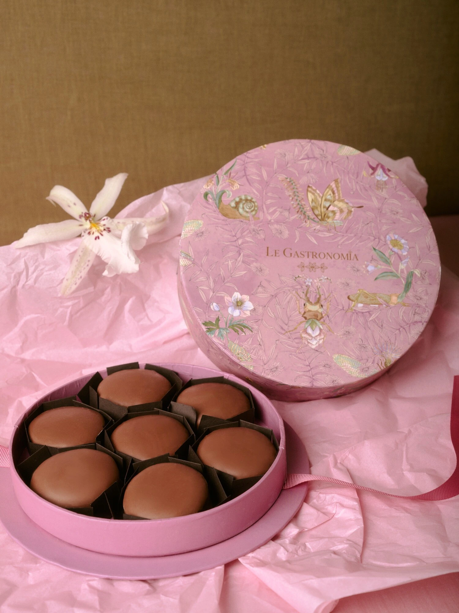 Caixa Redonda Bichos Azul, Rosa ou Verde (sem opção de escolha) com 7 Pães de Mel Tradicionais com Recheio de Doce de Leite e Cobertura de Chocolate ao Leite ou Recheio de Brigadeiro e cobertura de Chocolate Branco