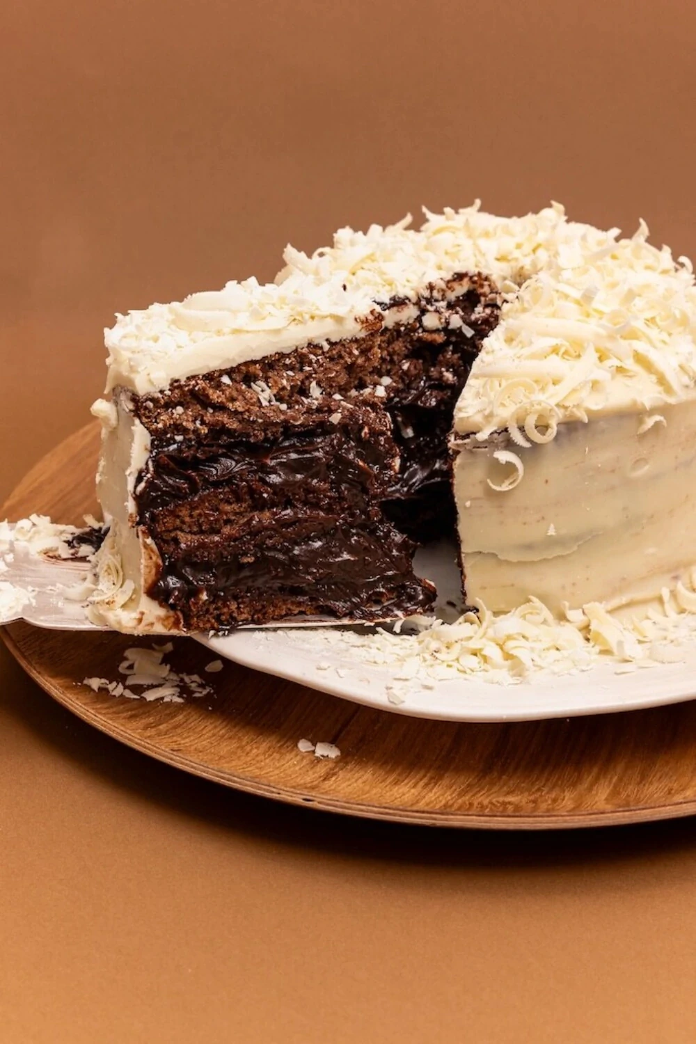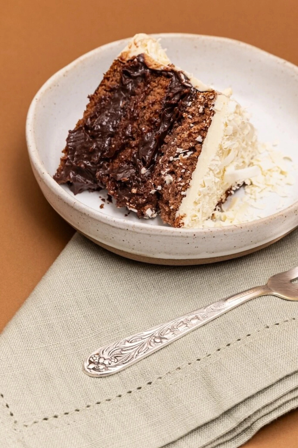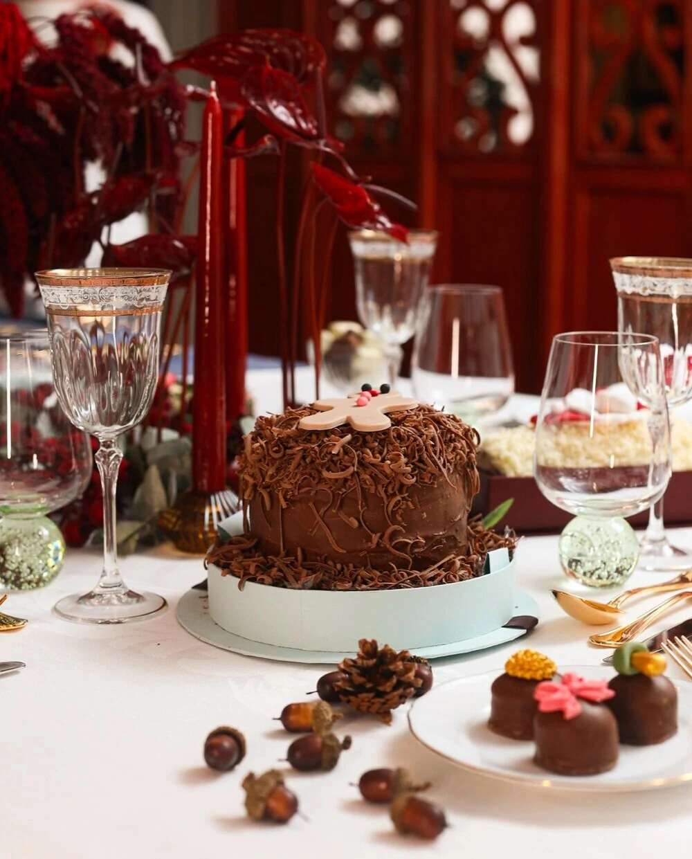 Bolo Pão de Mel com recheio de Doce de Leite coberto com Chocolate ao Leite ou recheio de Brigadeiro e coberto com Chocolate Branco e raspas de Chocolate com ou sem plaquinha de Natal sortidos.