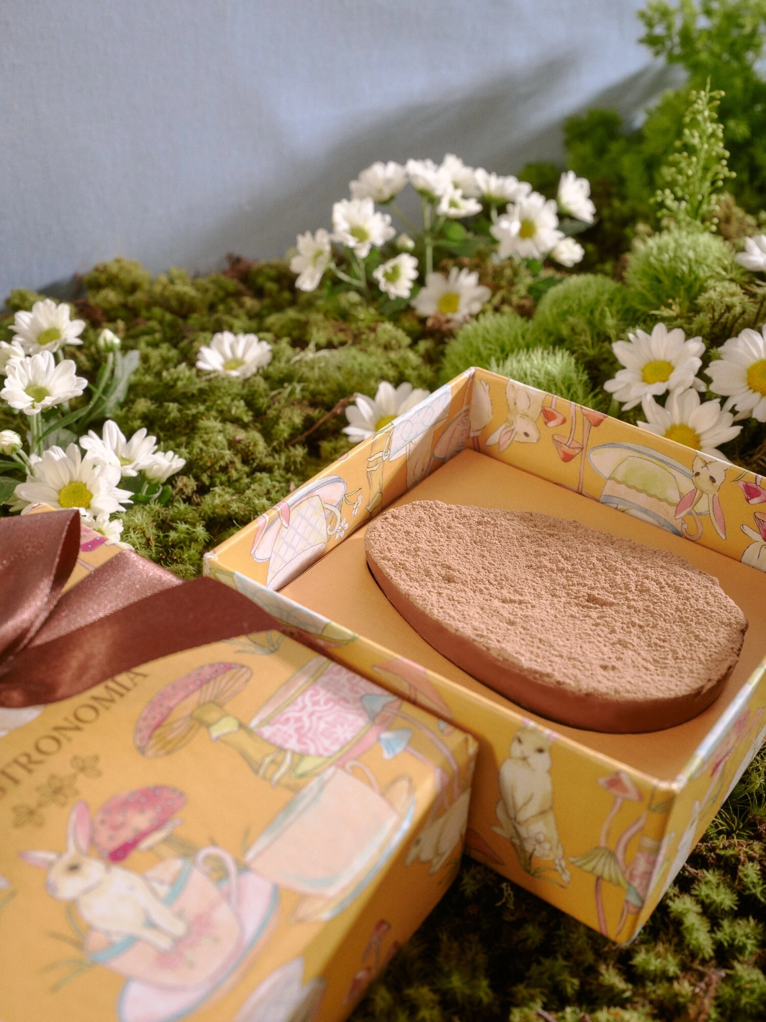 Caixa Páscoa com 1 Ovo de 160grs de Chocolate ao Leite e recheio de Pão de Mel de Trufa e Chocolate em Pó e Fita Marrom.