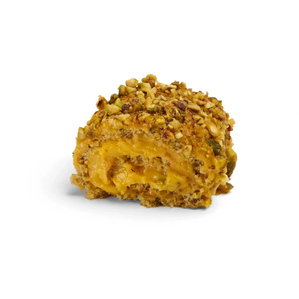 Massa de Pistache com Recheio de Ovos Moles e Lascas de Pistache. Caixa Bichos Rosa, Azul ou Verde (sem opção de escolha). Fotos ilustrativas.